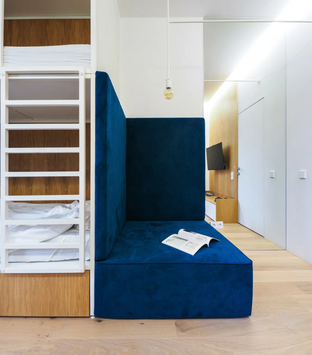 一座32㎡的公寓改造项目,考虑到空间的面积限制,设计师减少了室内的装饰品,以不同材质的不同属性、色彩出发,营造出小空间内充满张力的戏剧效果。