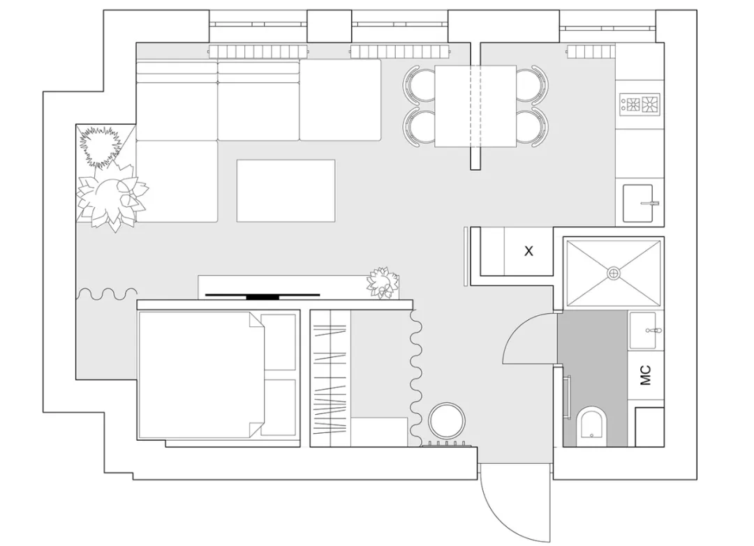 44㎡的公寓改造项目,需要利用有限的预算发挥至空间的最佳状态,不论是功能区的布局还是视觉上的效果。