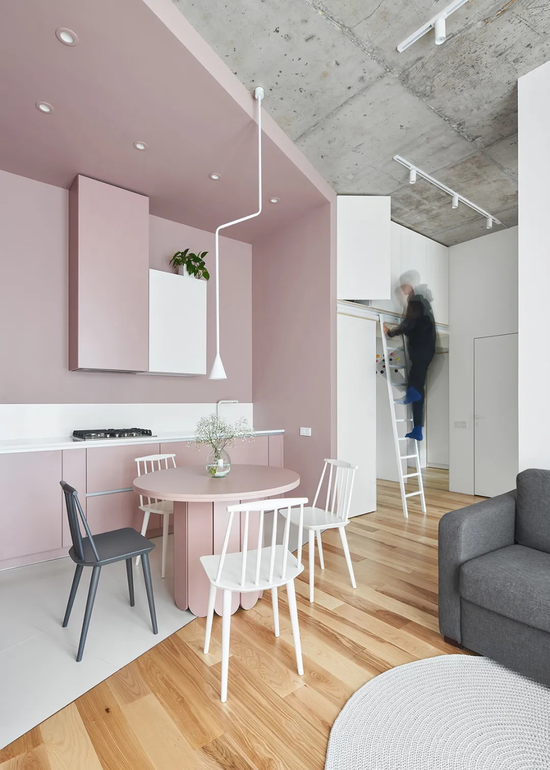 这所小宅面积65㎡,通过精致悦目的细节,将工业风的硬朗简约与家居的精巧温馨独具匠心的组合在一起,使空间结构明确、外观明快简洁,活泼不缺矜持,洁净不显清凉,既有现代生活的简约实用,又富有温馨的生活气息。