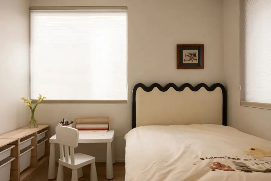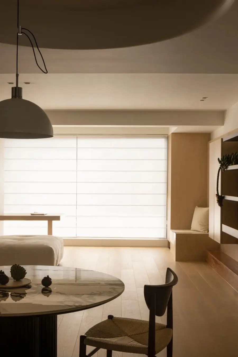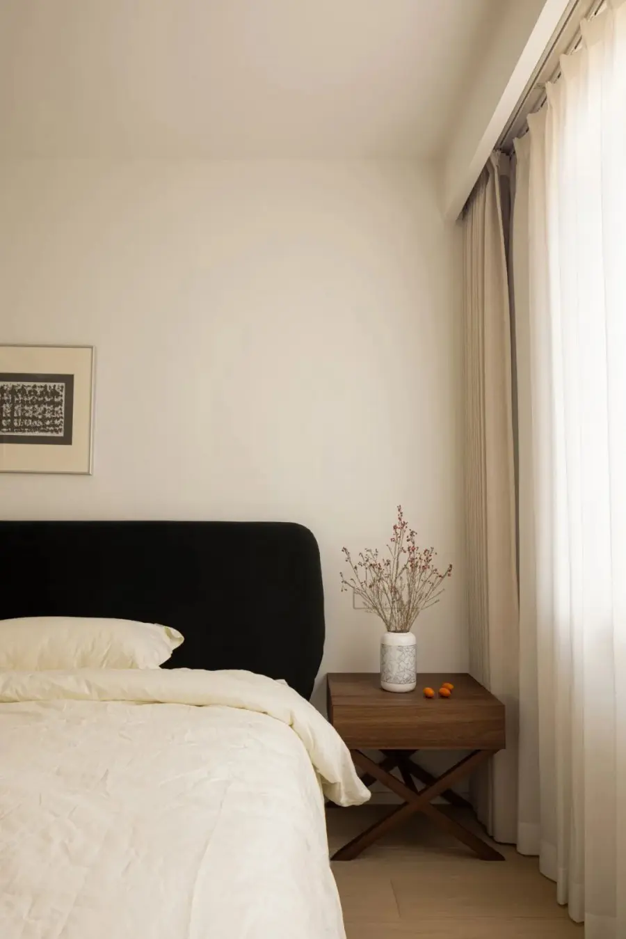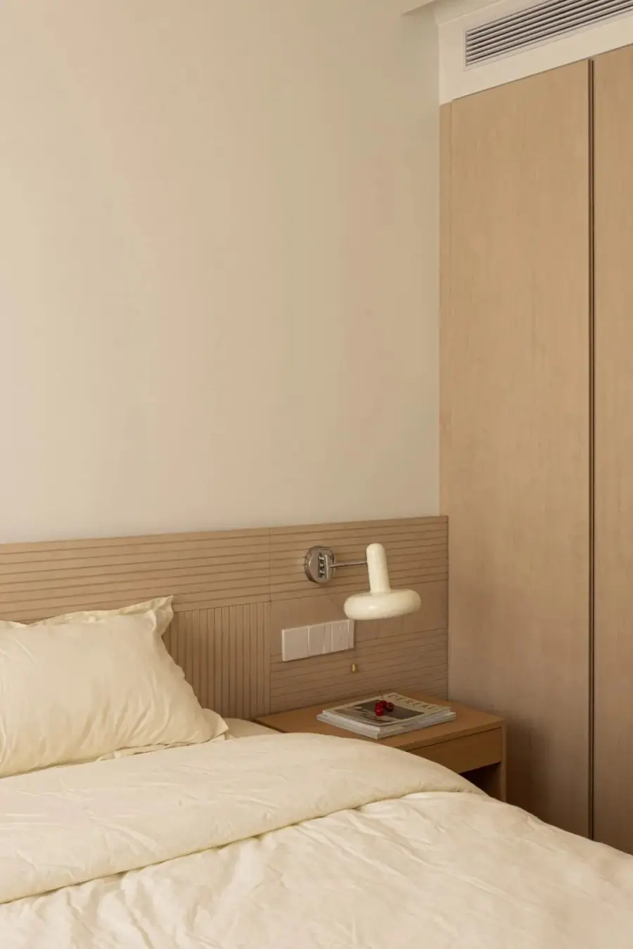 清浅细腻的笔触勾勒睡眠空间,如初秋的阳光温柔、风儿舒爽。无须过多色彩言语,木色与米色的温柔配比,色彩柔和、线条流畅,以材质为载体营造温暖而宁静的氛围。以生活点滴为创作灵感,与艺术的距离,有时只是咫尺之间。