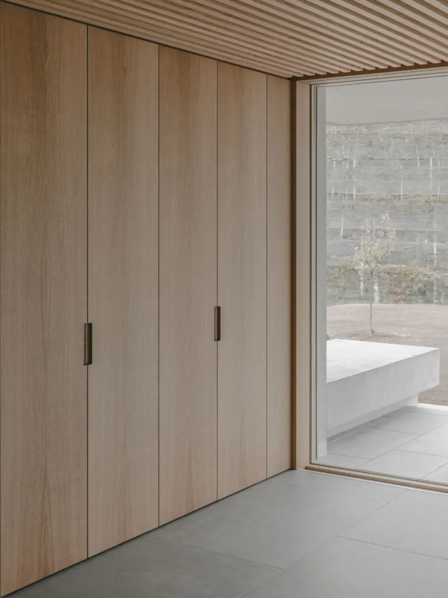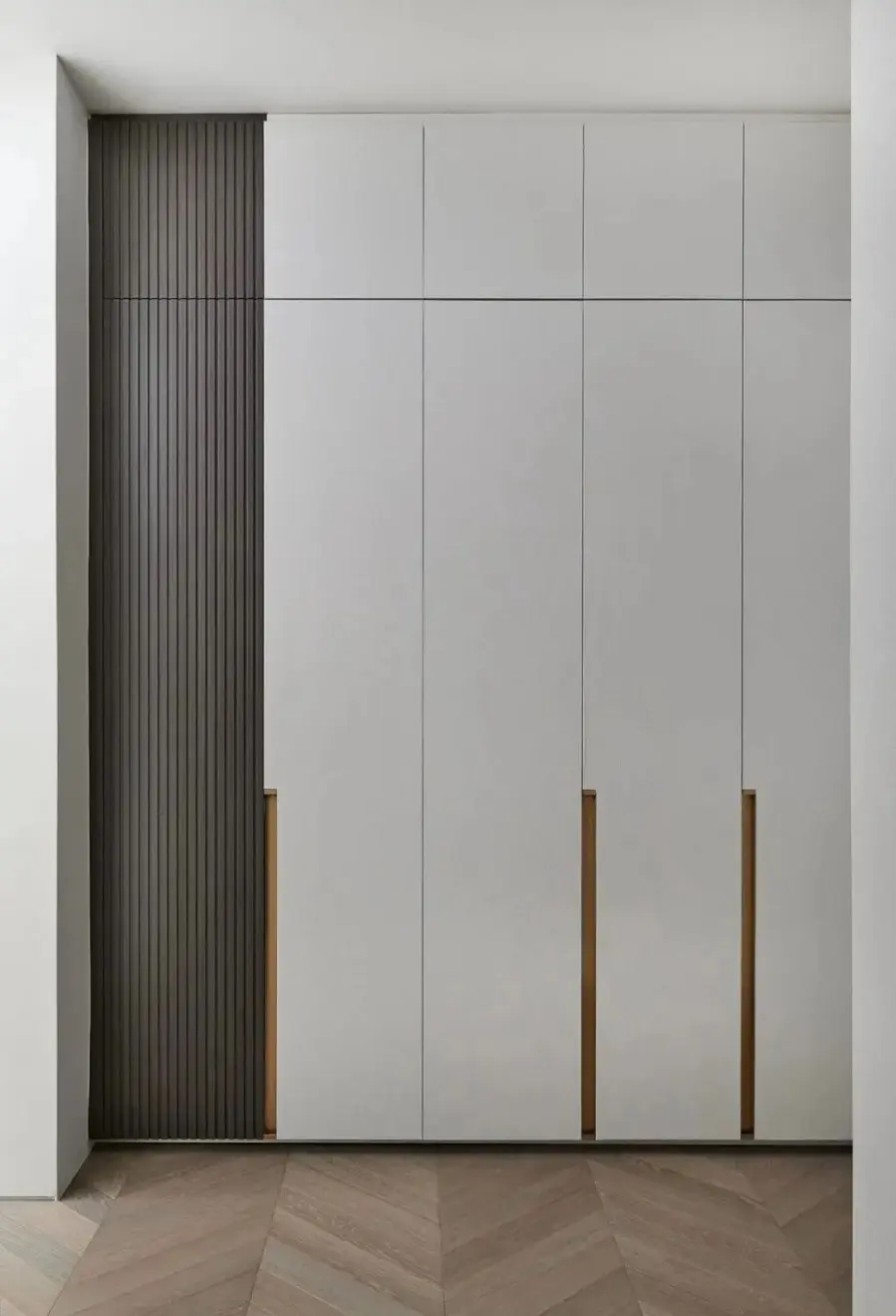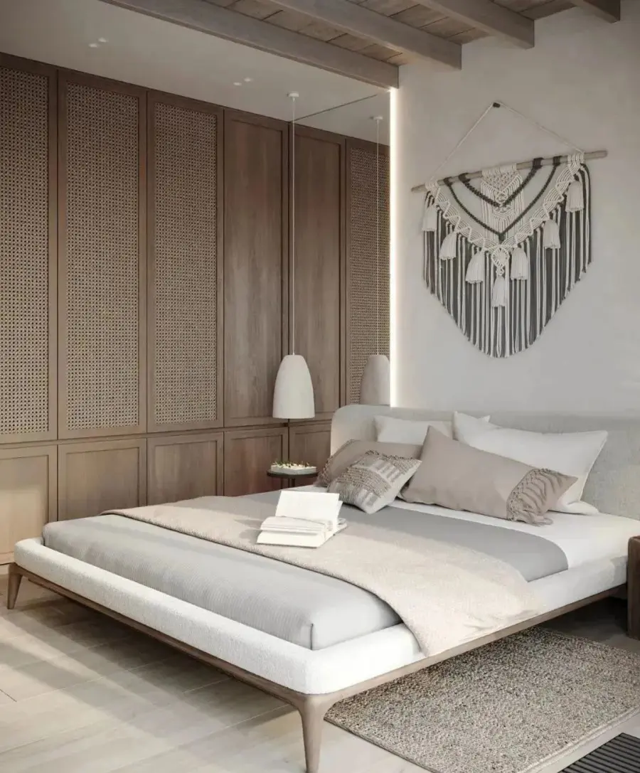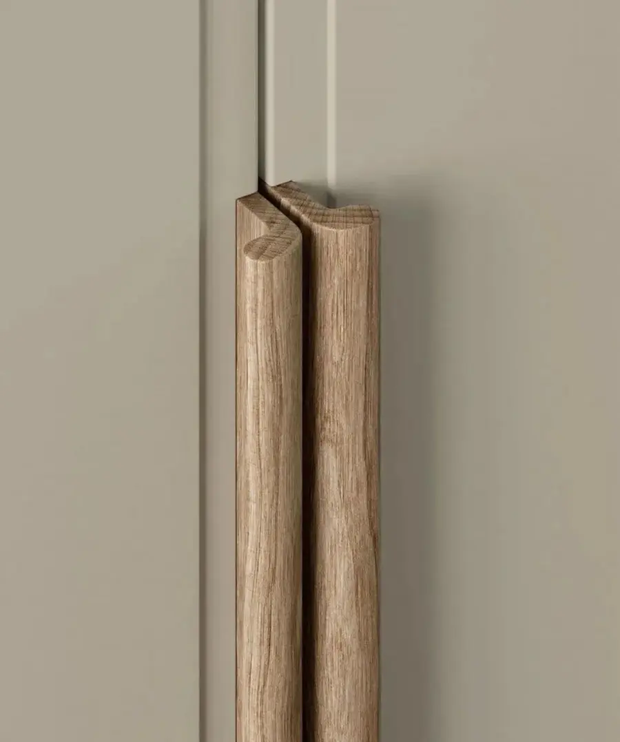 藤编元素运用到衣柜上,时髦又符合,在视觉上不仅能让整个空间变得更加轻盈,营造轻松舒适的氛围。在功能上能够保持衣柜内的物品透气通风,不易潮湿之外,还可以防尘,可谓一举两得。