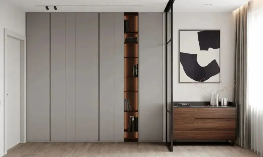 定制衣柜的设计应该符合房屋整体风格,颜色上也要与周边环境相协调。选择合适的颜色能够增加房间整体的装修效果。