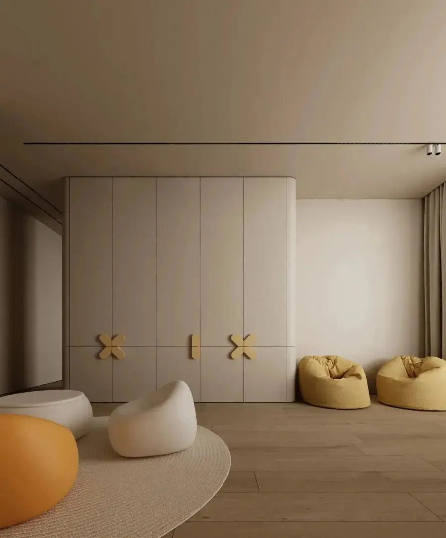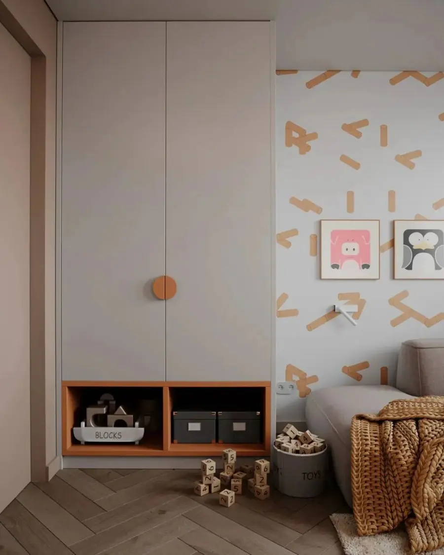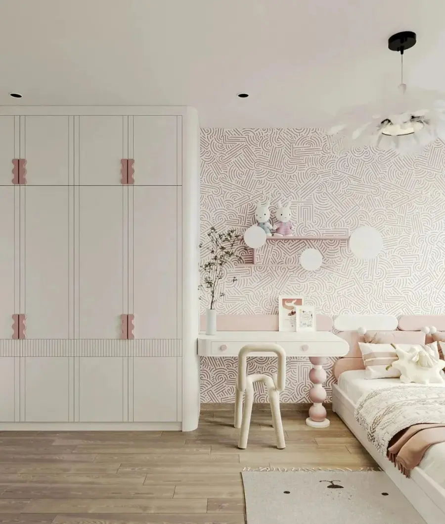 儿童房的定制衣柜,不仅需要采用明度高的色彩、活泼大胆的配色,还要让孩子可以轻松收纳玩具、衣物、书籍等各种杂物,尽量利用好每一个小角落和转角的空间,满足收纳、展示及学习等多重需求。