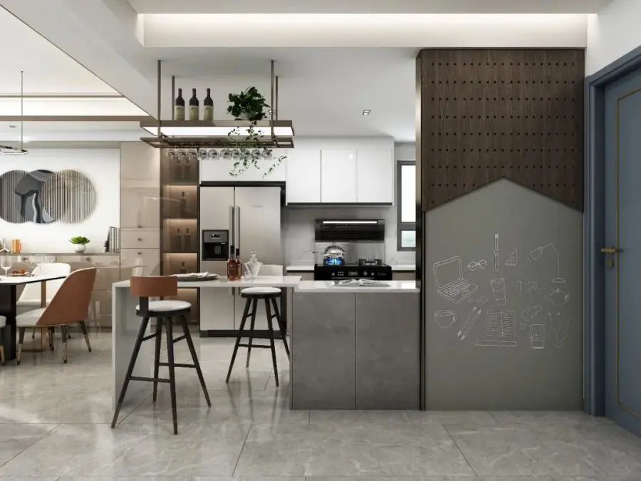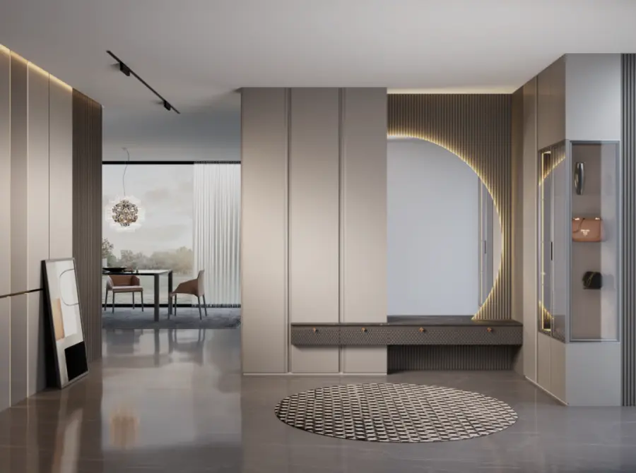 灯光设计:采用无主灯设计,局部照明和氛围灯结合,提升空间层次感。