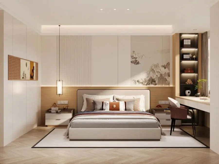 装饰细节:墙面挂上水墨画,摆放一些古典摆件,增添文化气息。
