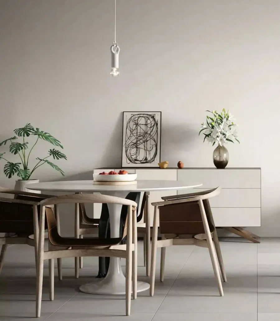 ③如果喜欢聚餐,且餐厅空间很大,可选择更大的圆桌,若圆桌直径超过1.4m,建议加个转盘。