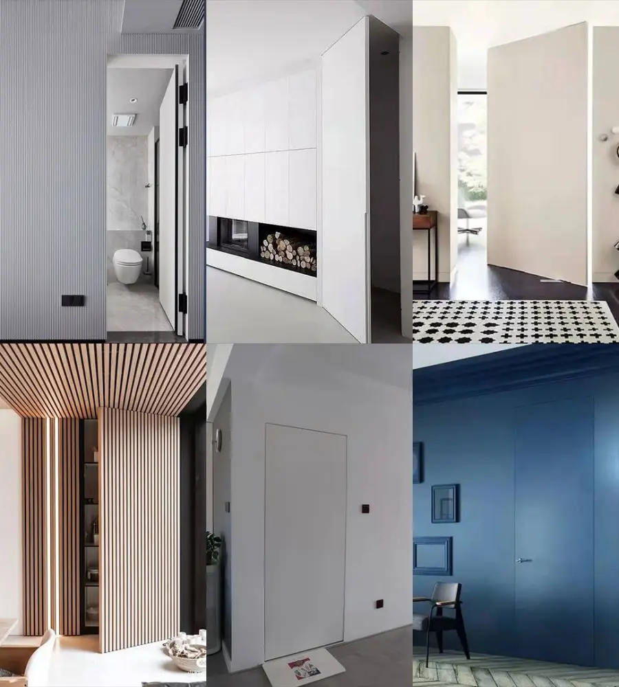 旋转门其实也算是隐形门的一种,风格厚重大气,常见于别墅豪宅。这种门需要多角度旋转,对空间有一定要求,不能有外物阻挡。