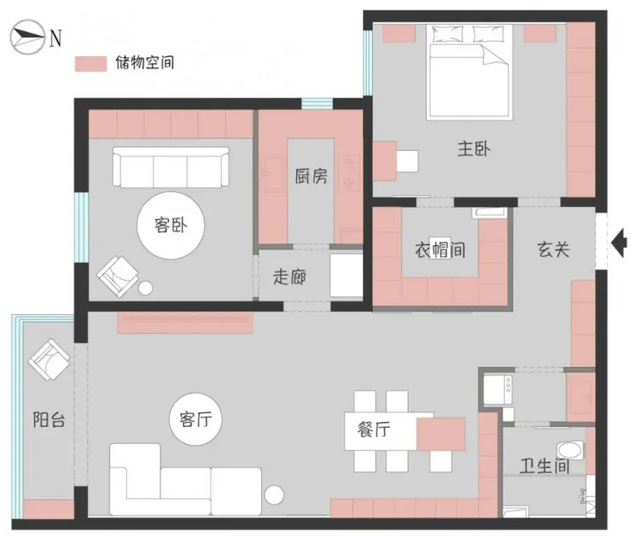 【简约风设计案例】103㎡两居室,极简风格+超强收纳,住十年不过时!