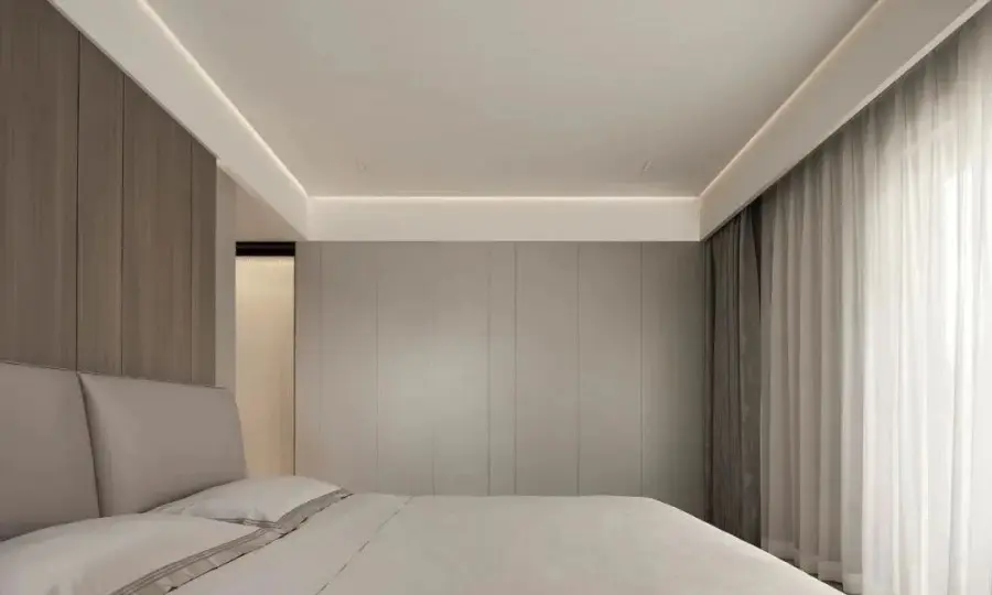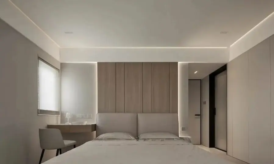 ▲ 主卧延续极简的设计,线条简单而流畅,色彩统一而纯粹,一张舒适的大床,无需过多的表达,安稳和自在悄悄的会在每一个夜晚伴随居住者入梦