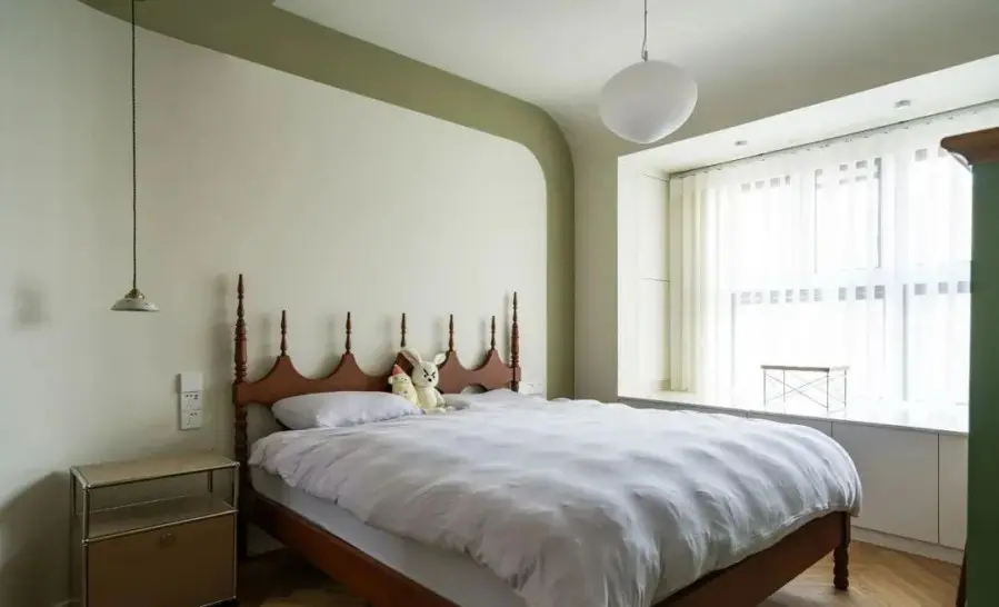▲ 主卧设计既有当代的语境,也有经典复古元素的软装搭配,背景干净整洁就是为了衬托中古床