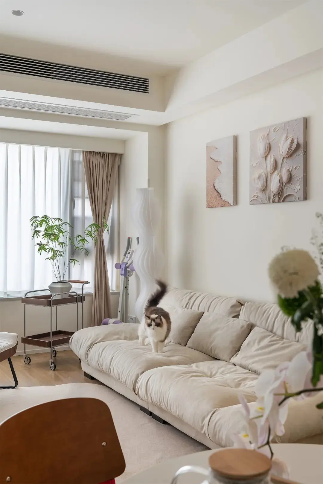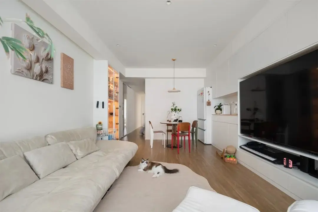 今天要分享的是一套94平米的奶油原木风的家装案例。家庭成员是业主夫妻和两只可爱的小猫咪。整体空间以温柔的白色为主基调,加入木质元素,淡雅的色系将空间的简约之美展现得淋漓尽致。