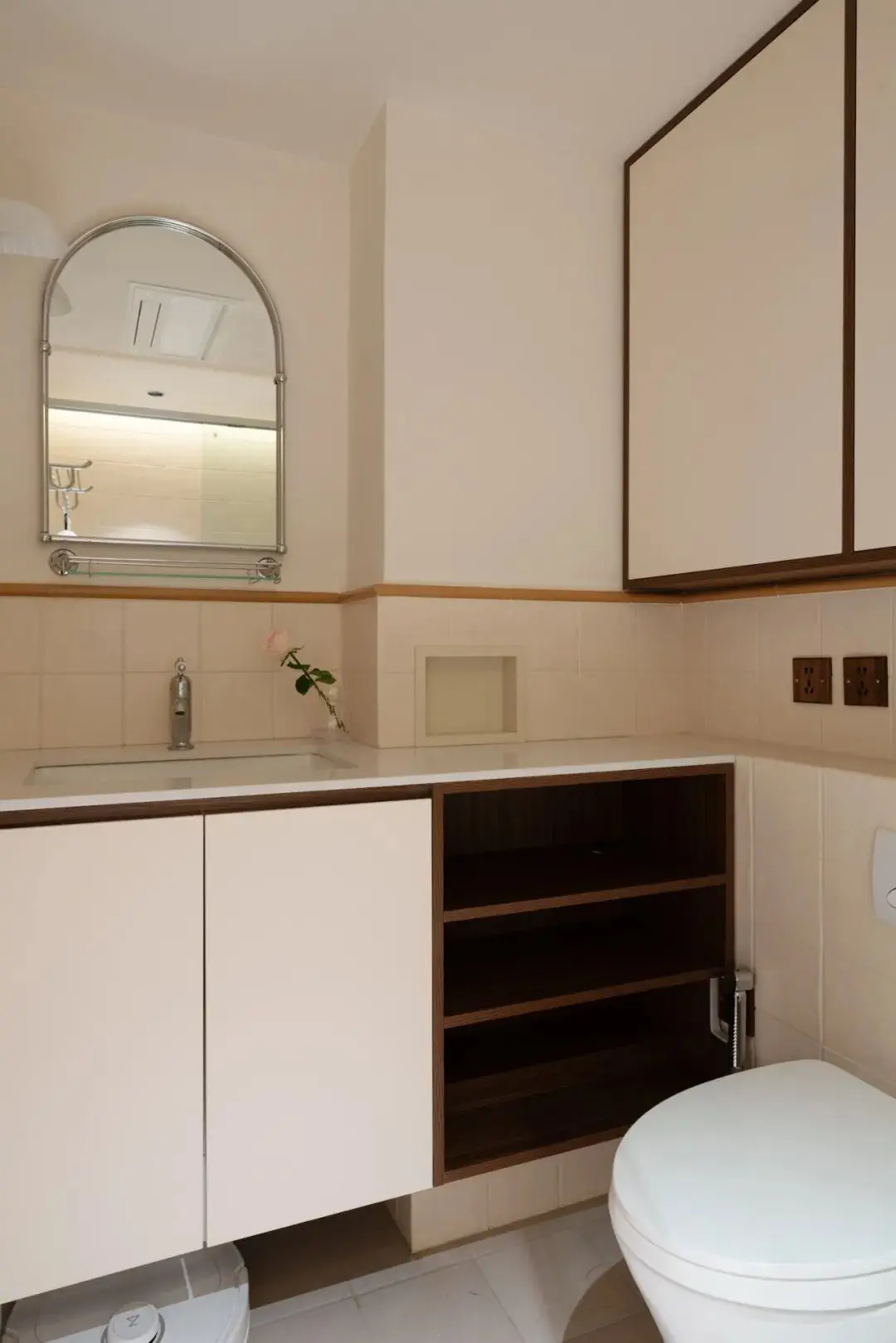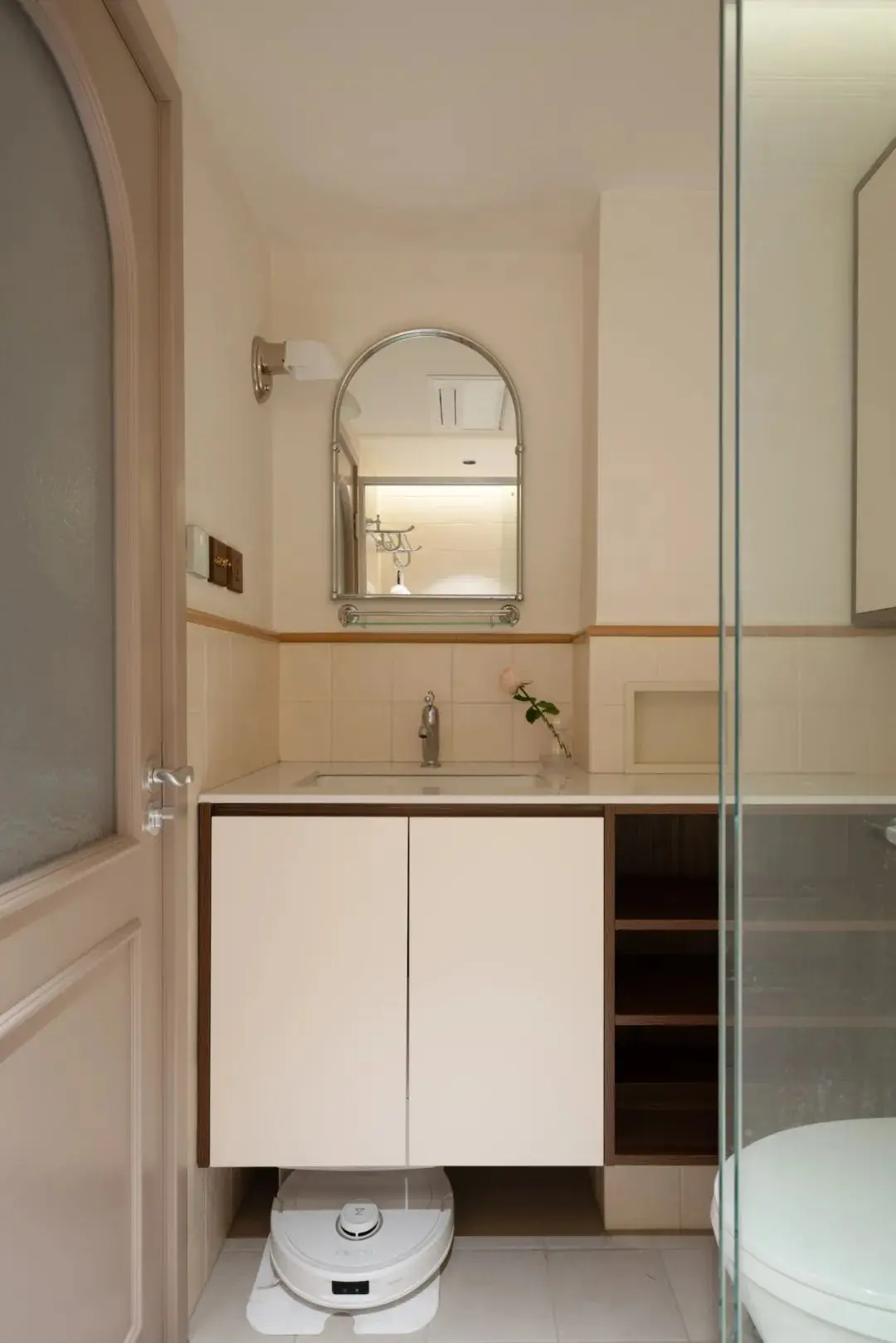 拱形元素金属线条的镜子,呼应全屋中古氛围的同时,精致感满满。