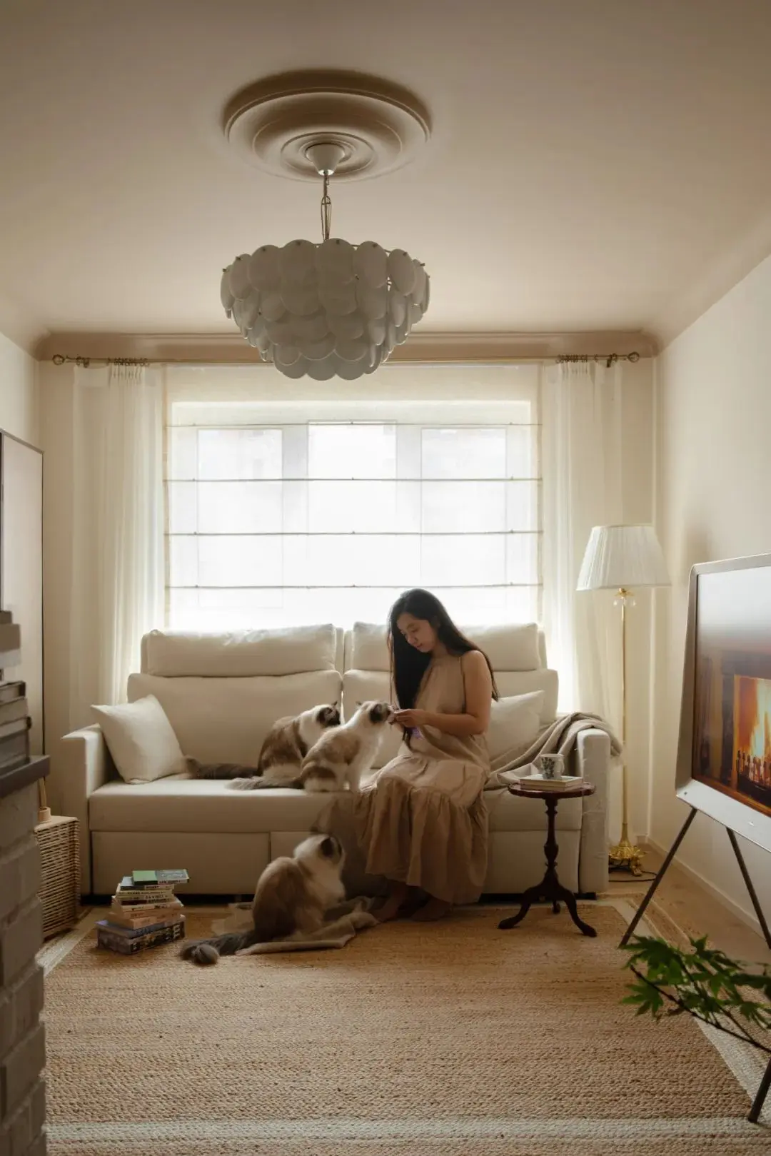 穿过餐厨,是由原来采光最好的主卧改造而来的客厅,这里是业主家最松弛的精神放空区。