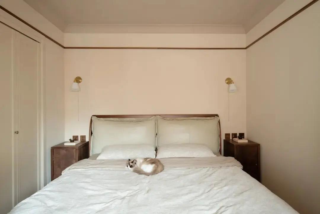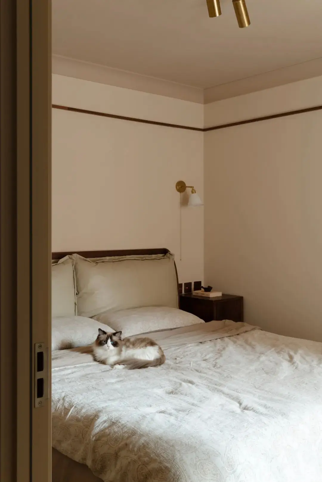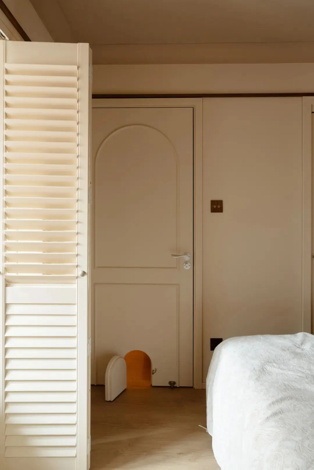 卧室门上的拱形小洞,专门为猫主子预留的,可在空间内自由出入。