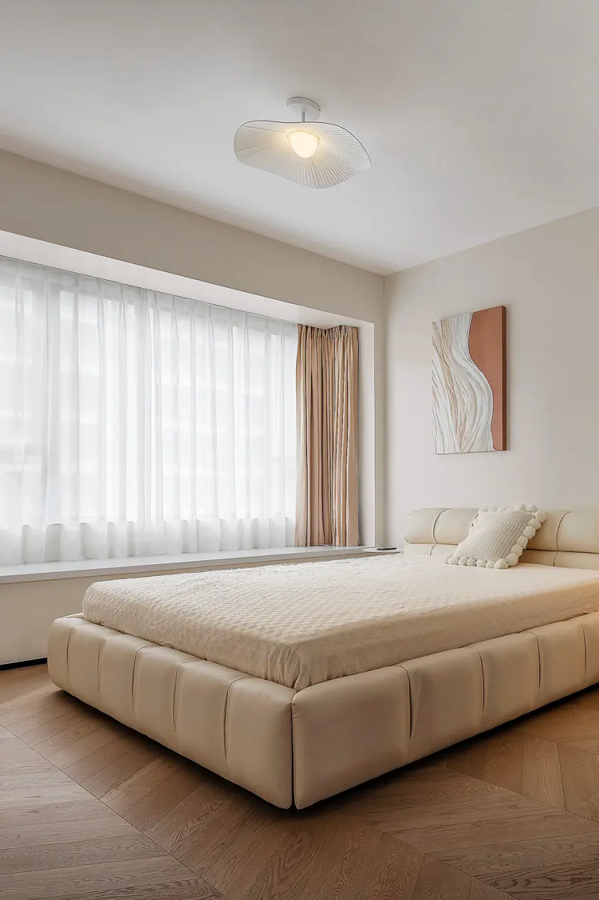 卧室素雅的配色,如同一首轻柔的摇篮曲,安抚着我们的心灵,引领我们进入梦乡,而松软的床品,如同云朵的拥抱,让我们在每一个夜晚都享受到如丝般顺滑的睡眠体验。