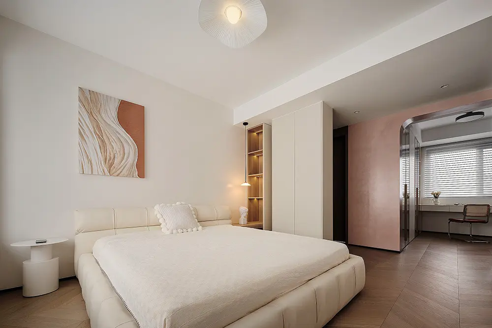The simple color scheme of the bedroom is like a gentle lullaby, soothing our souls and leading us into dreamland. The soft bedding is like a cloud's embrace, allowing us to enjoy a smooth sleep experience every night.