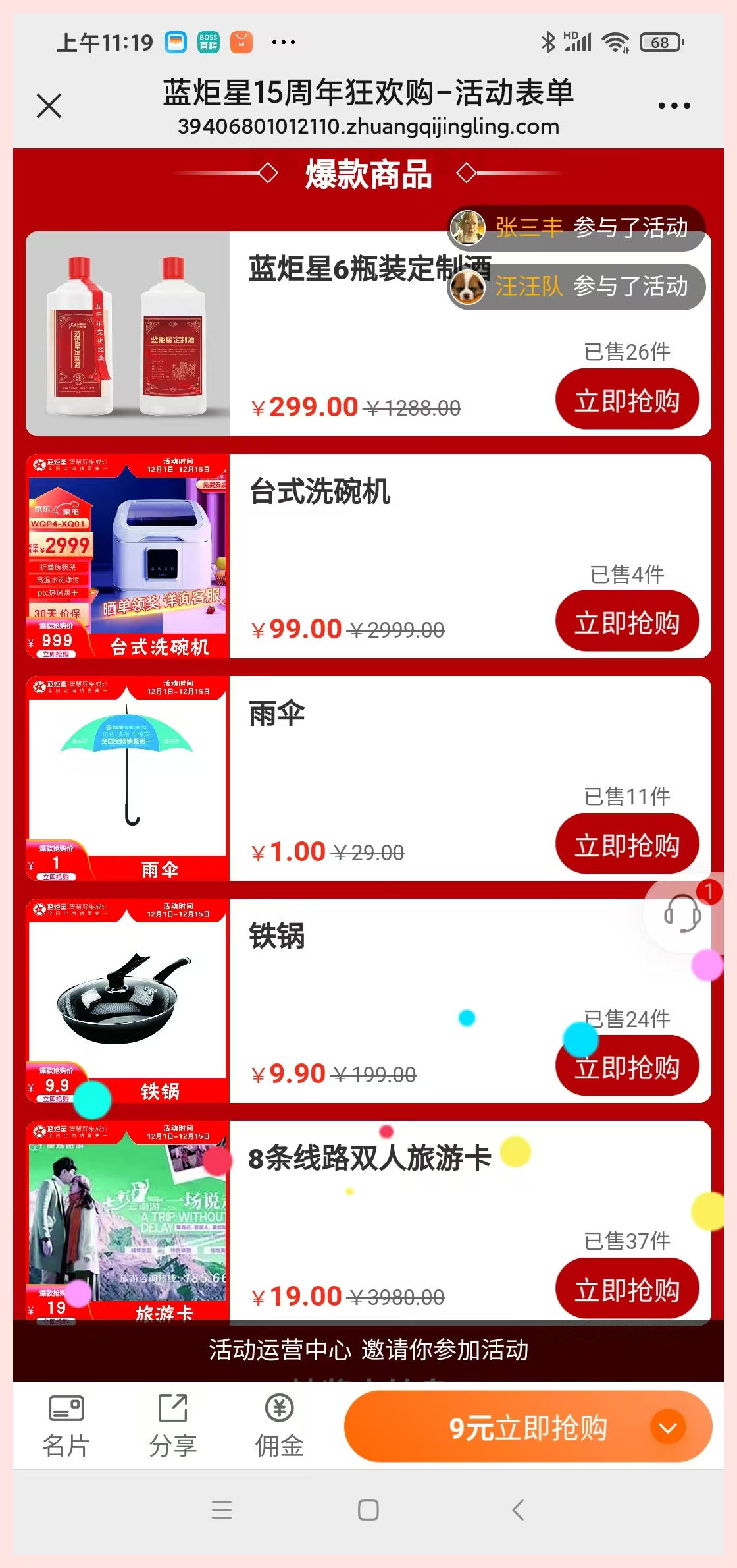 活动推广页可设置红包推广佣金