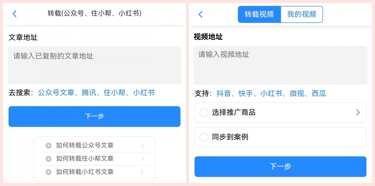 还可以把装企、建材品牌自己公众号里面的文章、抖音里面的视频,转载到系统【公司专栏】里,然后让员工分享,既能宣传,也能获客跟进;还有像方案、效果图、实景案例等品牌素材都可以上传后进行“分享抓客”。