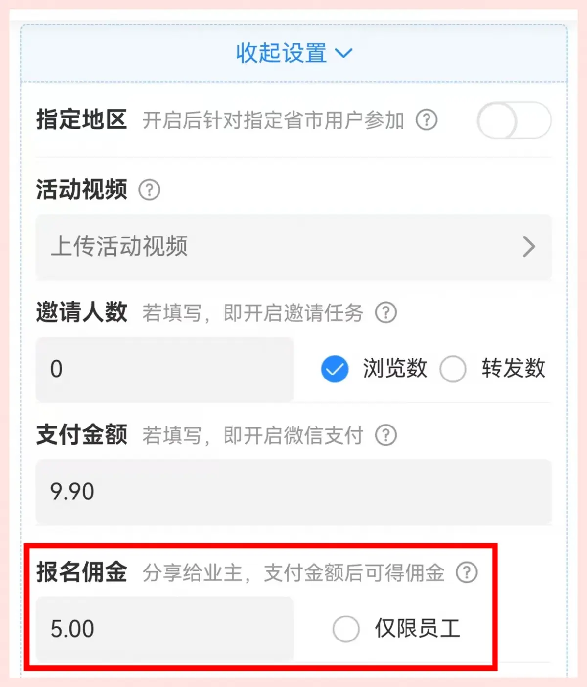 活动推广页可设置报名分销佣金