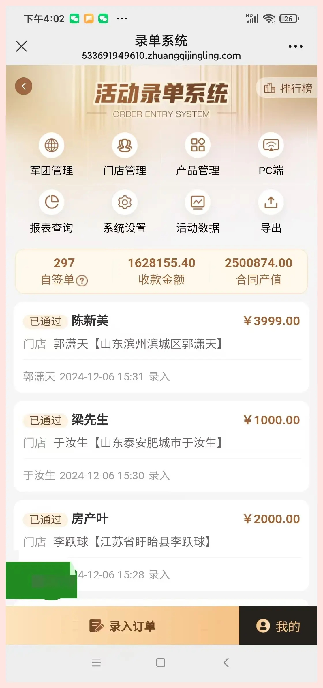 可以支持军团、门店、个人的战绩PK,支持带单、欠单、自签单的排行。
