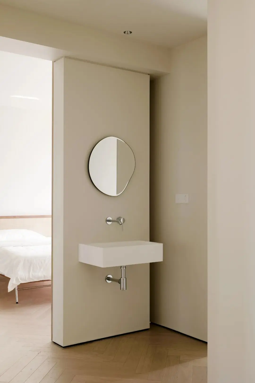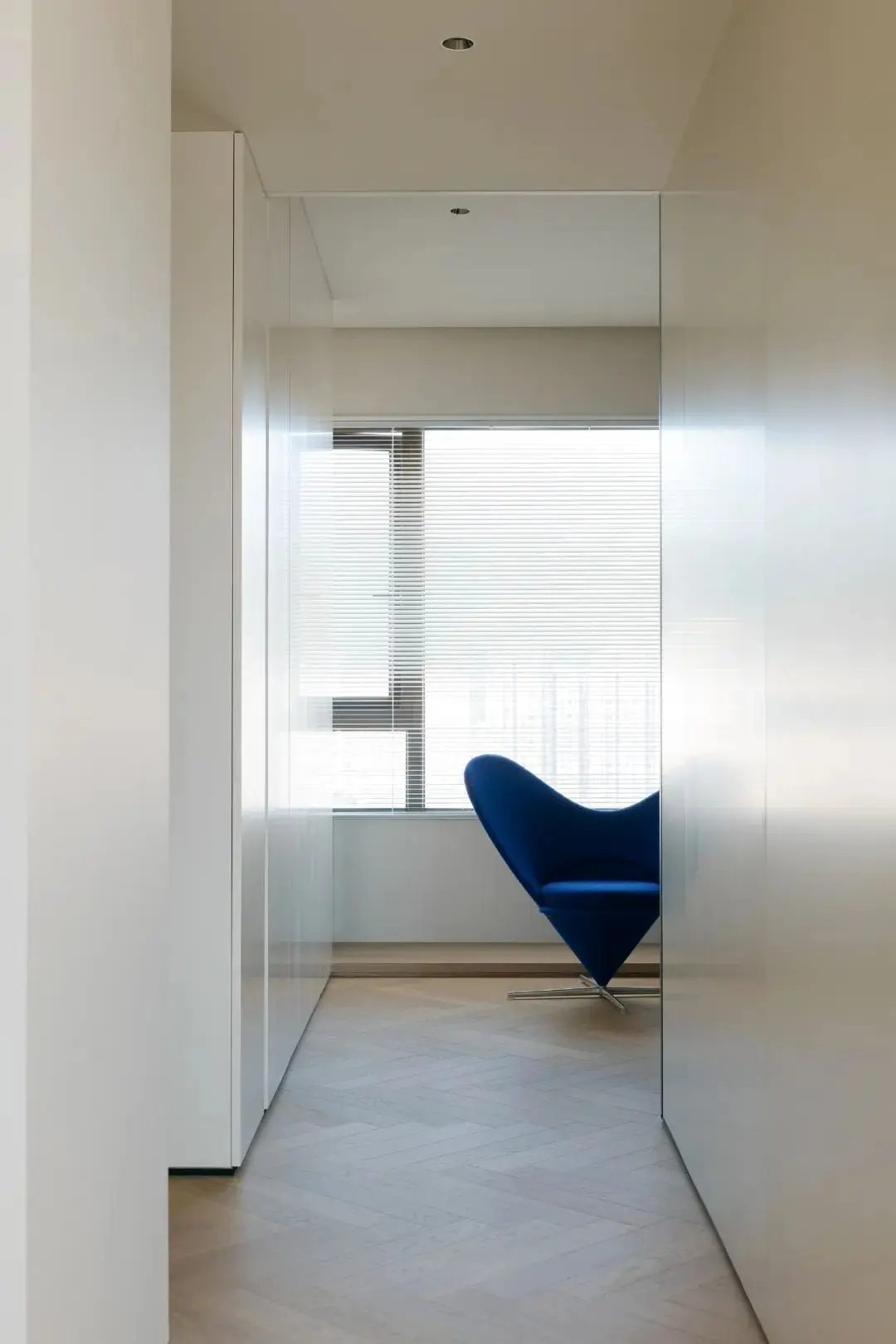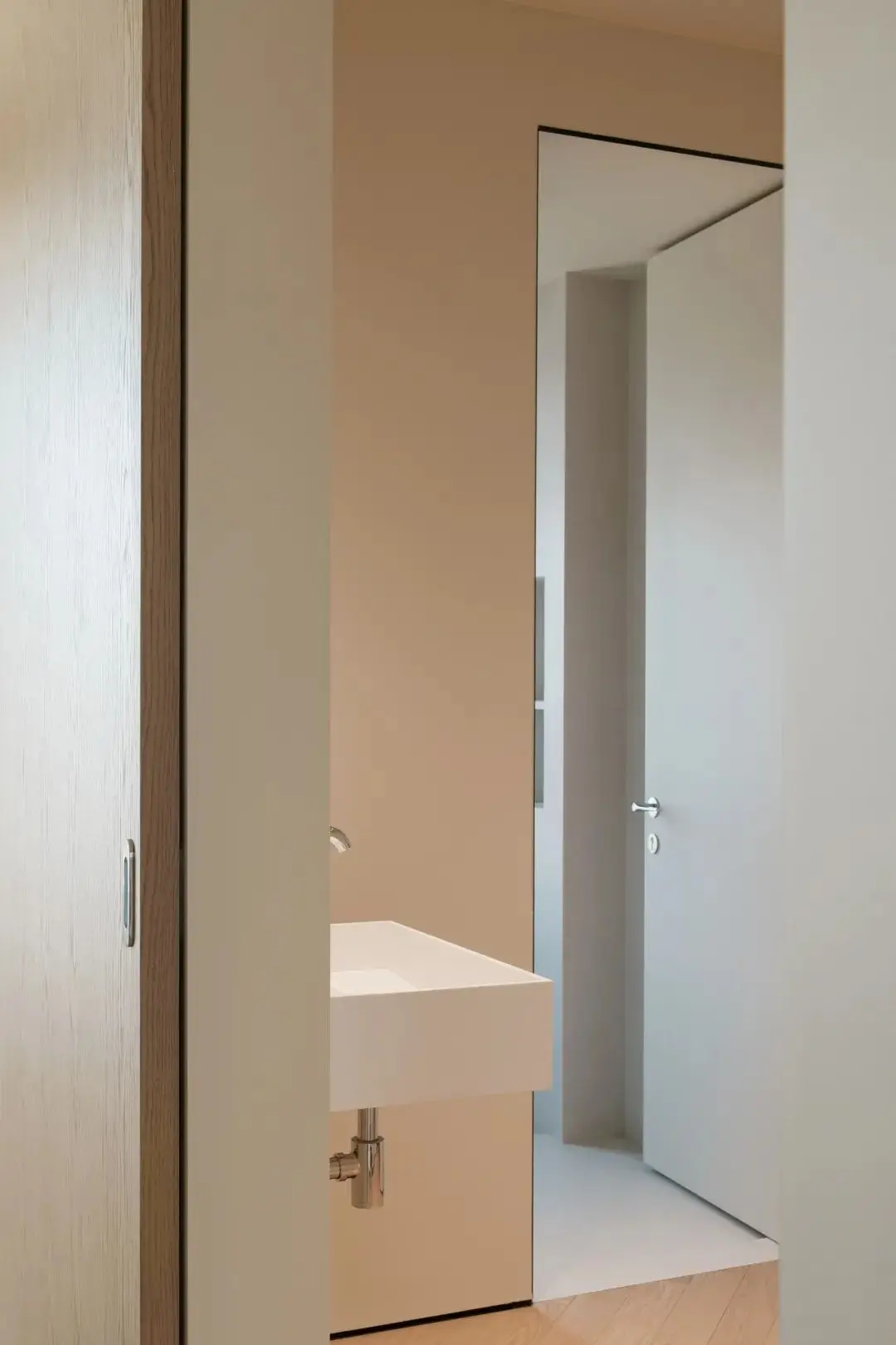 通过单扇推门的方式来连接转换区,