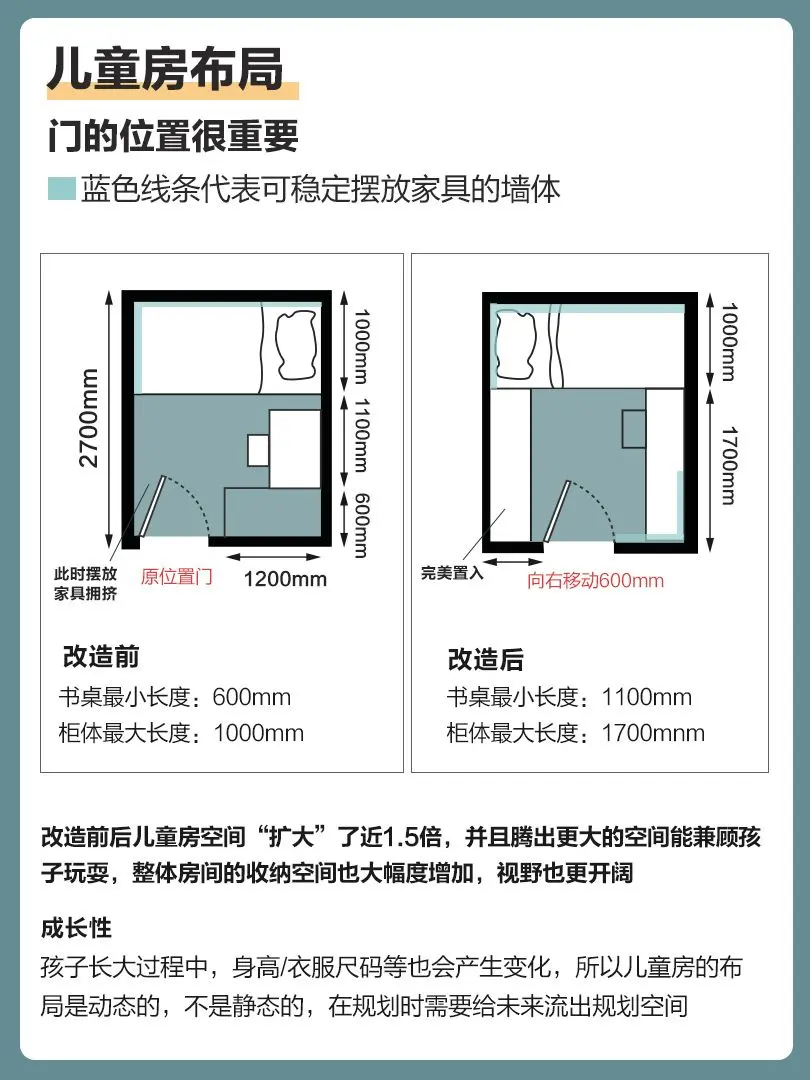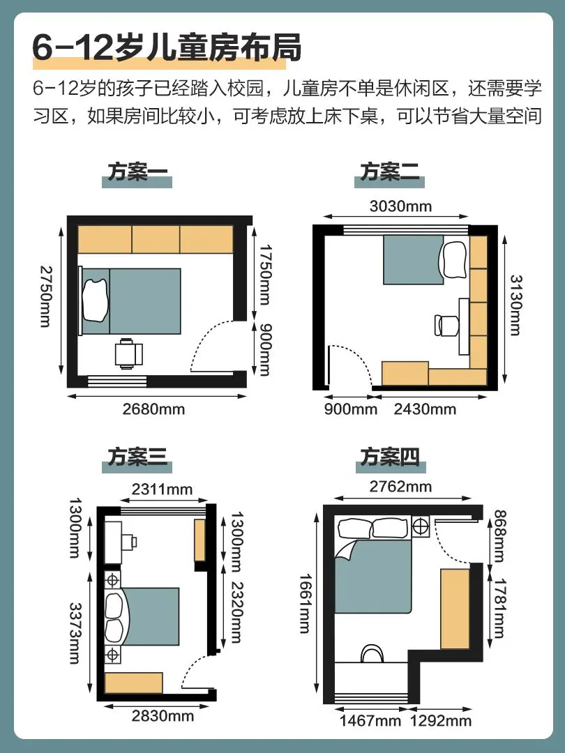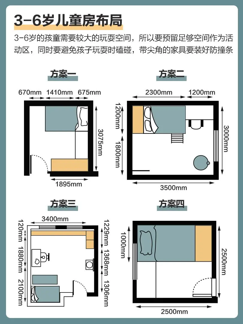 ⑤格局规划,要长远考虑,家具尽量易于移动,以便适应孩子成长阶段进行重新布局。