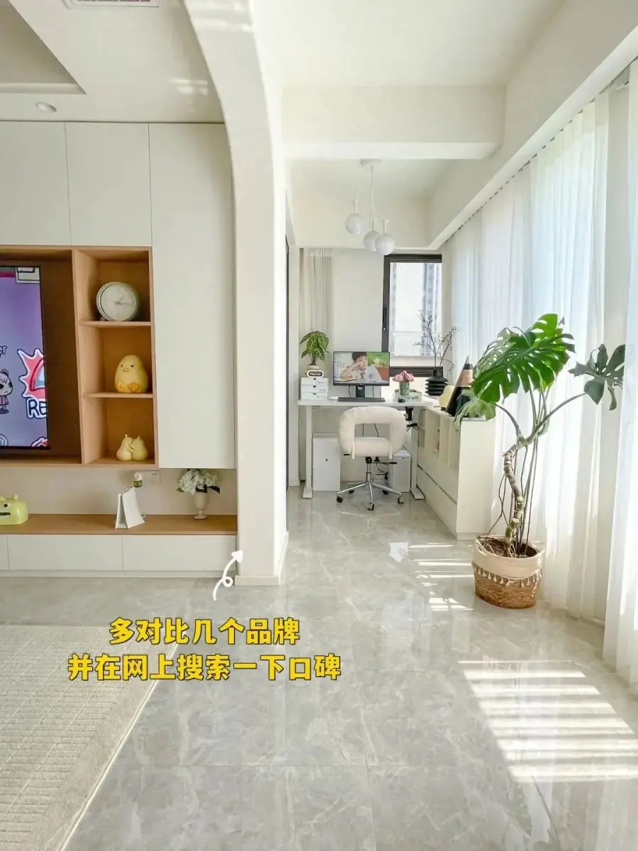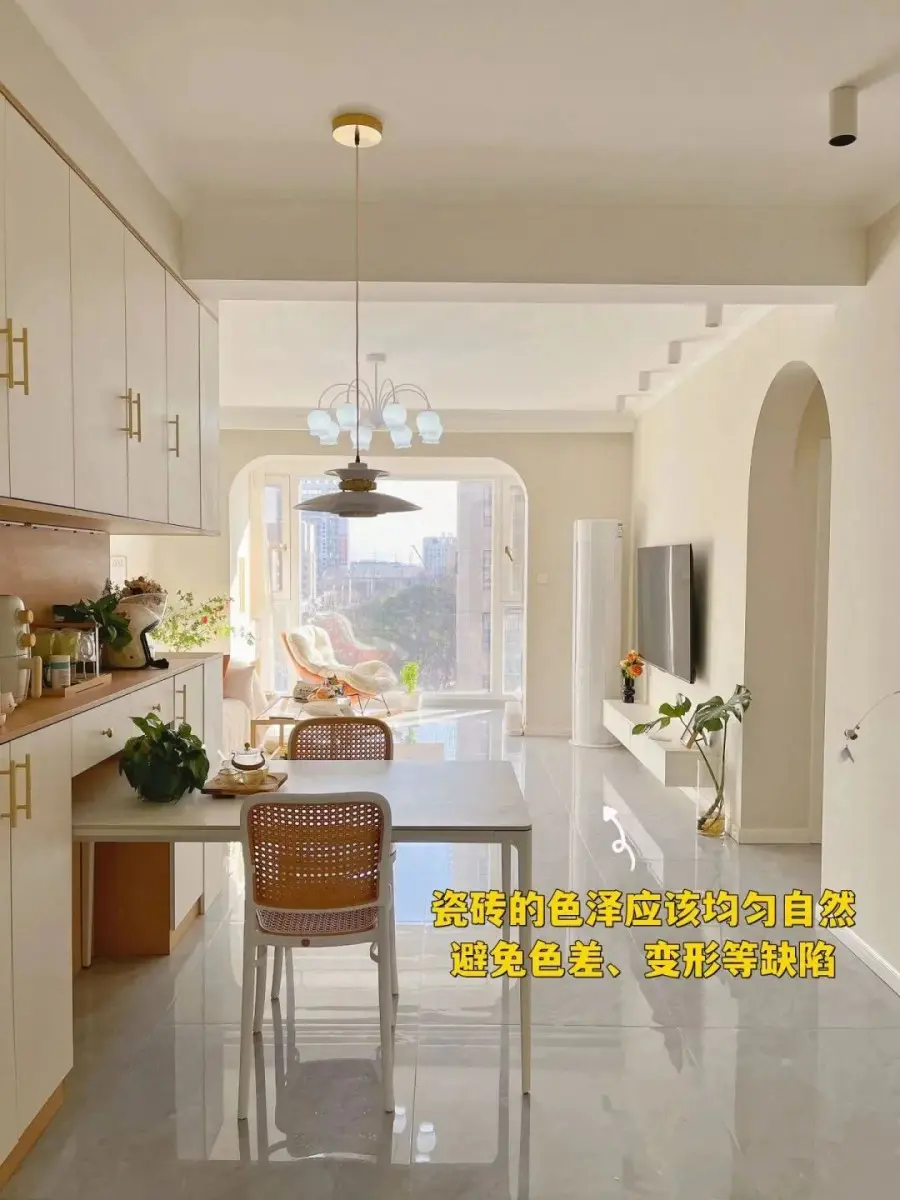 普通的住宅户型,尽量选择浅色瓷砖,优点是能提升房子整体的空间感,让室内看起来更加敞亮。