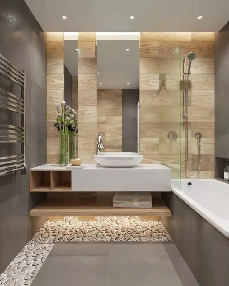 如果家里空间不大,又特别喜爱浴缸的朋友,可以设计成浴缸、淋浴房一体化的形式,既可以满足淋浴的畅快感,又可以满足平时泡澡的情调。