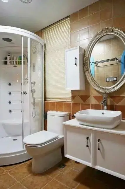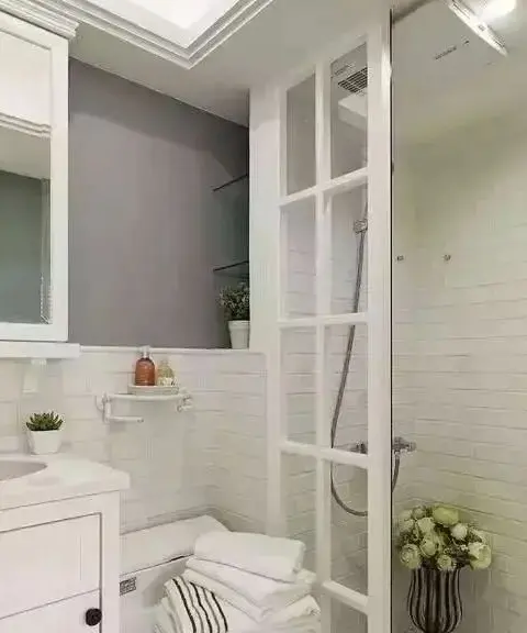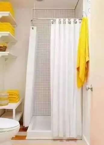 如果卫生间的空间非常小,就不要做淋浴房或者做隔断了,直接用浴帘就可以,后期用旧了可以换一个价格也非常实惠。