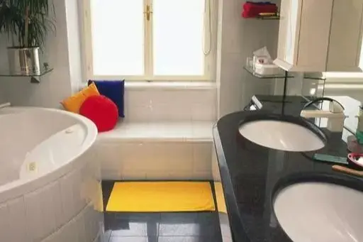 如果卫生间空间比较紧凑,可以用不同的颜色砖搭配,以及不同大小和不同文理的砖搭配,这样让卫生间的空间变得更为宽敞。