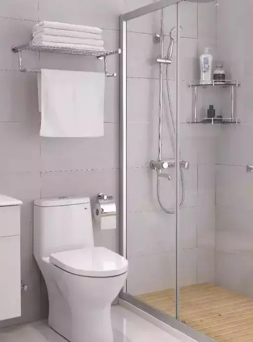 能做干湿分离的卫生间尽量做干湿分离,这样外边的墙壁和地面都不会湿,更换衣服也非方便。