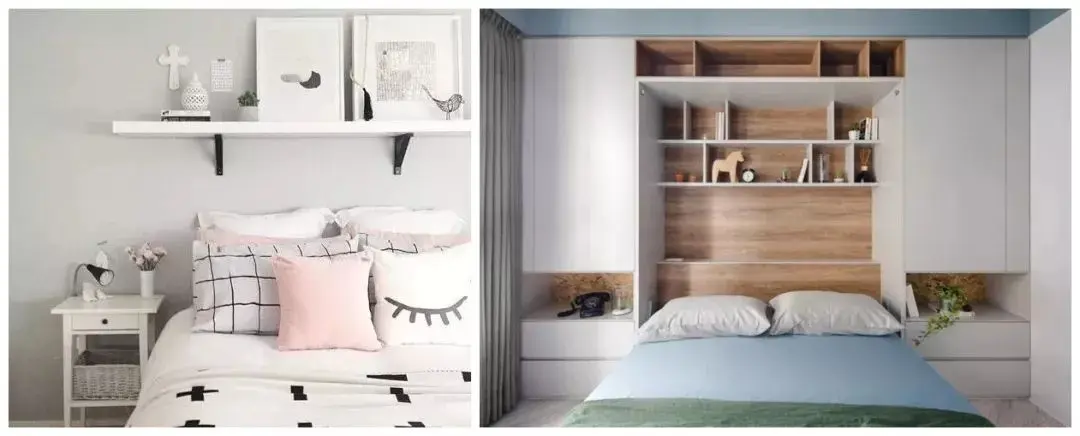 如今为了空间最大化利用,很多人在床头处也做起了搁板收纳(如下图1)。但是,床头背景这个位置取放东西很不方便,如果放置体积过大的物品,万一不小心掉下来,拍脸的感觉简直酸爽。