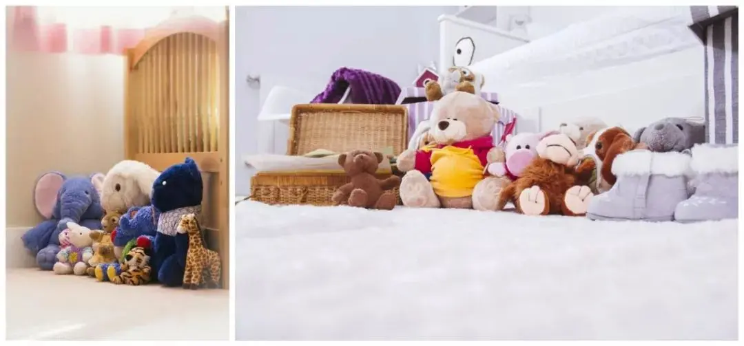 很多人喜欢把毛绒玩具放在枕边(如下图1),殊不知毛绒玩具表面极易隐藏灰尘、细菌和甲醛,还有一些“三无”毛绒玩具是用有害化学纤维填充的,里面甲醛含量也会超标,甚至引起呼吸道和皮肤感染