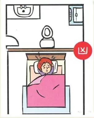 床头后面不可是安装马桶的墙面,因为这面墙潮湿而且细菌多,头顶着这面墙睡觉,会造成思想混乱,思绪无法集中,这样睡住10年以上,甚至会在脑内长瘤。