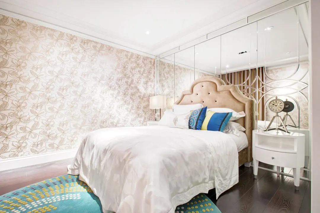 相比主卧的奢华,次卧更加突出一份轻盈优美。丝绸抱枕、时尚造型床头柜,欧式复古台灯......在这些看似平淡的装饰中,却令人强烈地感受到独特异国风情和传统历史痕迹,从而在休息中得到美的感受。