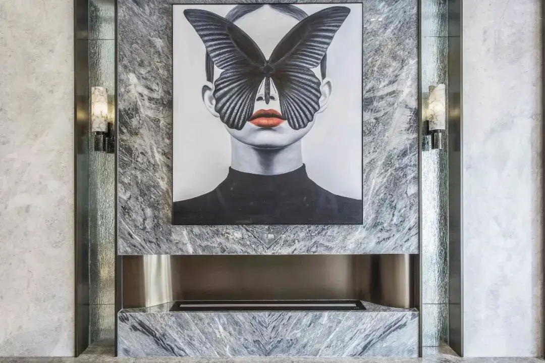 ▲以大理石呈现自然的流动的纹理,网格状架构兼具理性与感性于一体,极具通透性,克制严肃中又有浪漫情怀。
