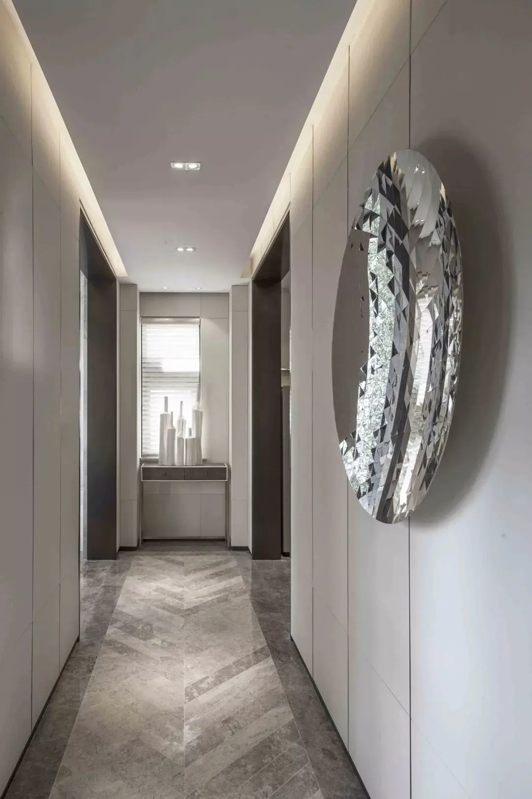 本案的设计从湖水中吸纳灵感,把动态的自然和静态的湖水作为表达对象,将动态的涟漪用静态的设计语言表达出来。希望这套装修案例能给准备装修的大家带来一些灵感。