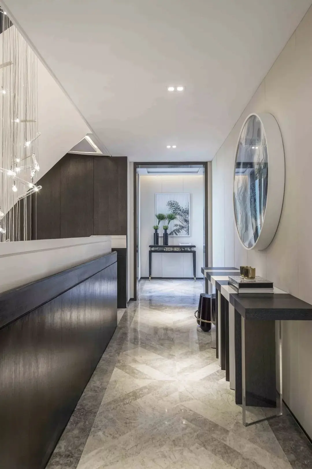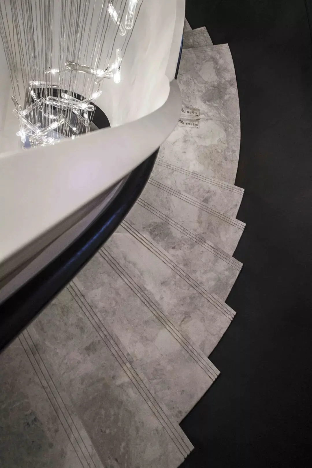 ▲烟灰色的水波纹大理石地面,像是一汪平静的湖面中,投下一粒小小的石子,泛起一圈又一圈的涟漪,淡淡地描绘着独属于江南的古韵。