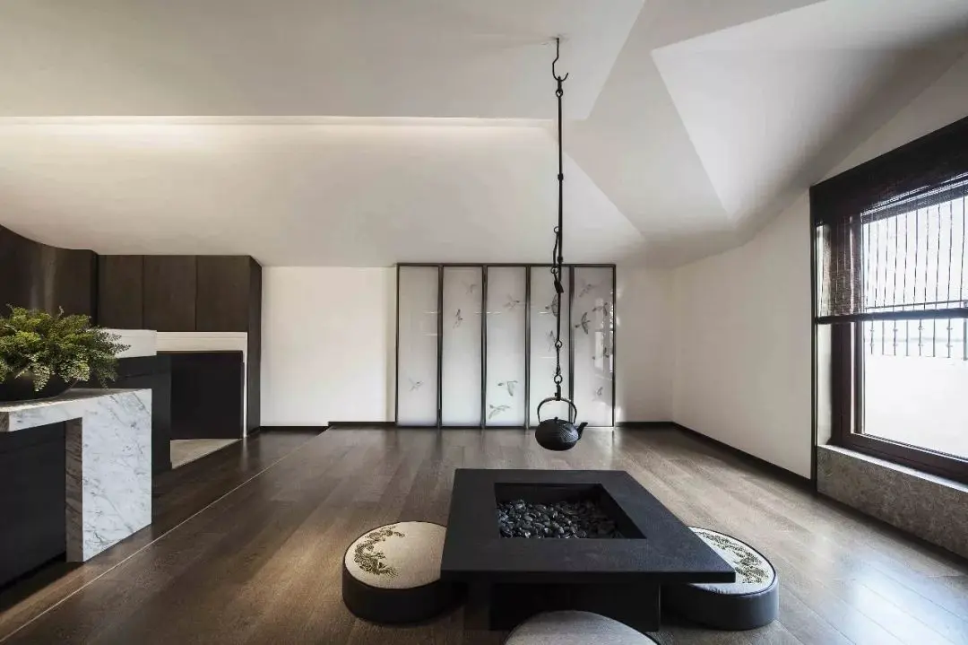 ▲阁楼空间做成茶室,做了一些辅助光源,整个空间大面积留白,让人置身其中,静心与放松。