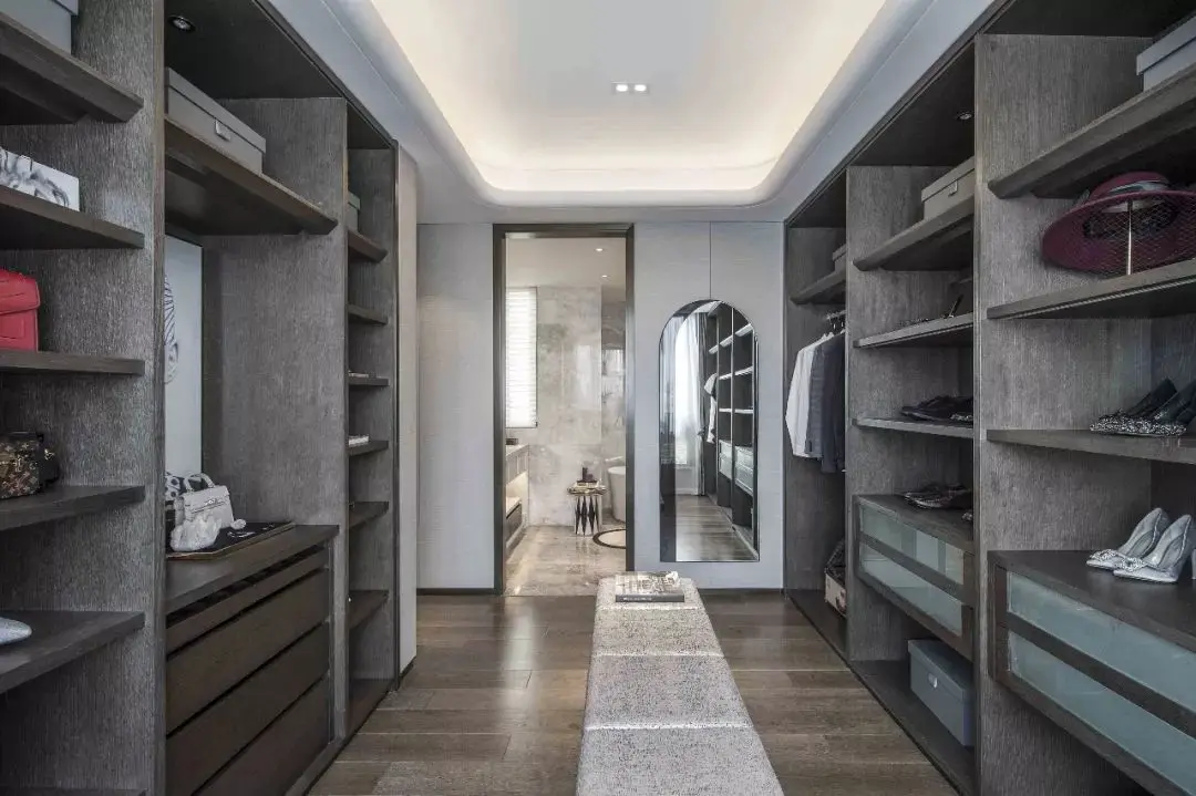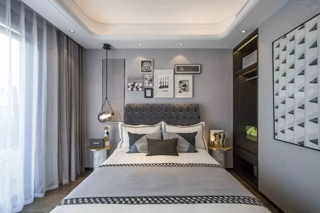 ▲整个房间的设计别出心裁,空间配色轻松自然,精致的线条勾勒与大面积的灰,呈现出沉稳大方、不奢华、又不失品味的居所。