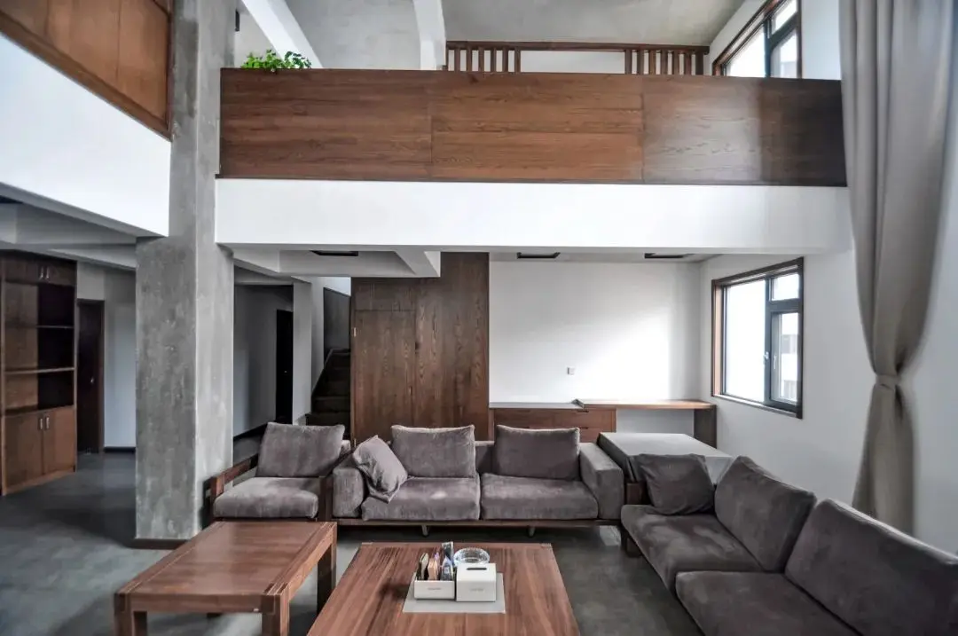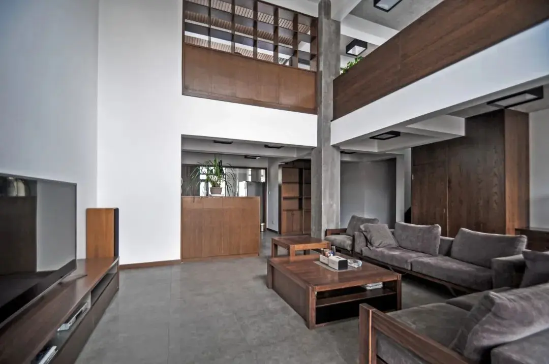 ▲挑高的客厅墙面以白色简约为主,在二楼的护栏与屏风柜上加入大范围的原木质感,与客厅的木质感家具相呼应,让空间还有一种中式的端庄与稳重气质。