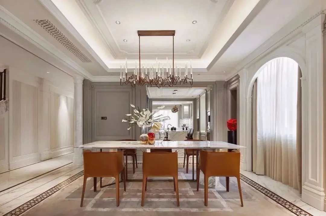 这是一场关乎艺术与生活的碰撞,在五光十色的都市之里,绘出一派优雅丰腴美学之家。恢宏豪迈的圆拱门,淡雅含蓄的水墨画,物境的热情与内敛在意境中交相辉映。高级定制贵妃沙发和Reflex垂吊水晶灯圆润柔和,创造动静稳定面,产生主次关系和空间节奏。