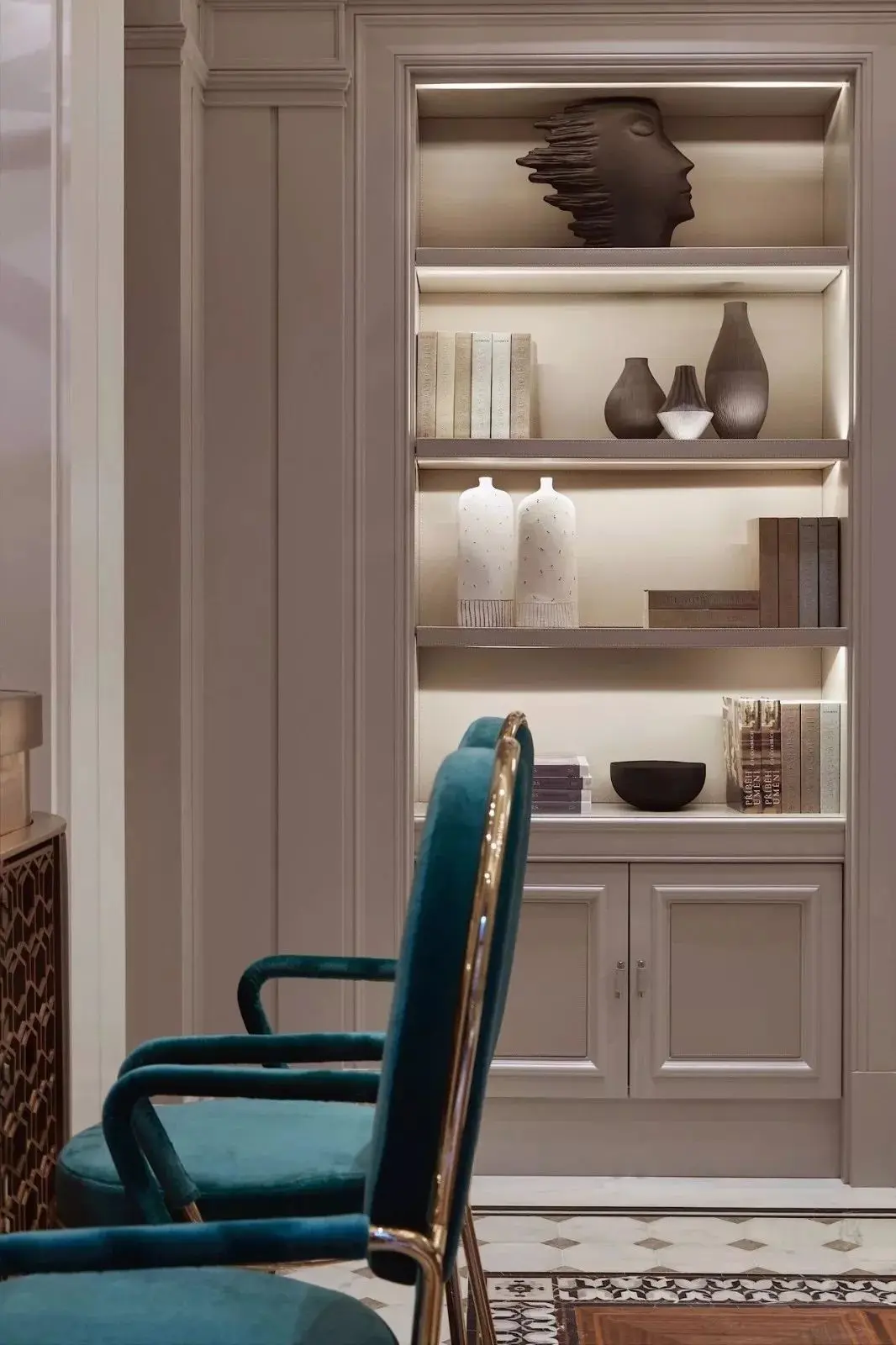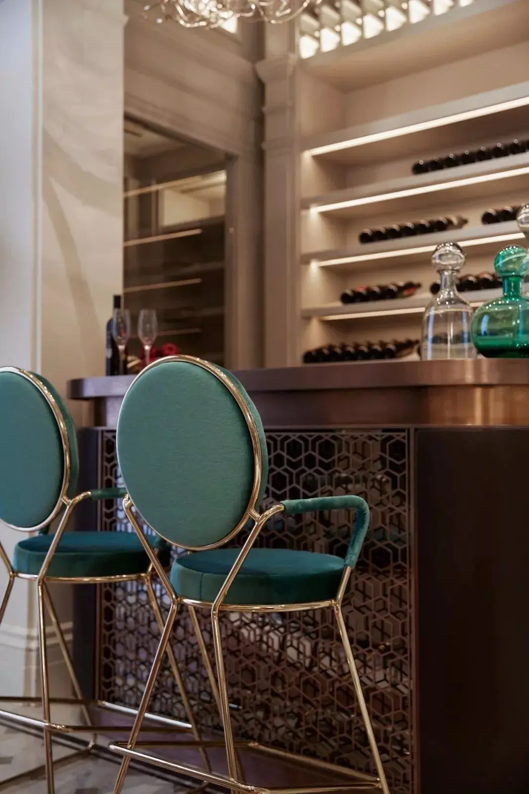 精藏酒窖隐透而私密使空间得以流通串联,绘以层次感。Moroso镉绿色铁艺吧椅,仿佛瞬间跃至北欧酒馆内,耳畔响起爵士乐的纸醉金迷。一口浓烈,一抹岁月。作别案牍劳形之后的夷悦,抽身时光的把控,于此舌尖品着珍藏陈酒佳酿,闭目专注于古典名乐,独享现代独特人群集聚魅力、优雅、梦幻的氛围。