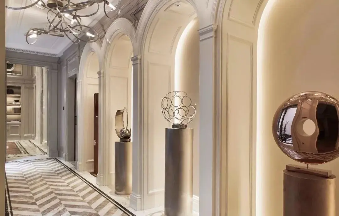 线条排列组合灵活多变,古典硬装与现代家具融合,精简而饱满,井然而分明。运用独特的设计语言,隐喻多种文化和风格的融合,打造出全新生活方式,契合都市个性彰显,在现代锻造和传统技法中幻化出无限可能。