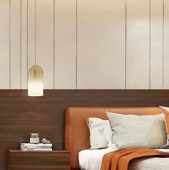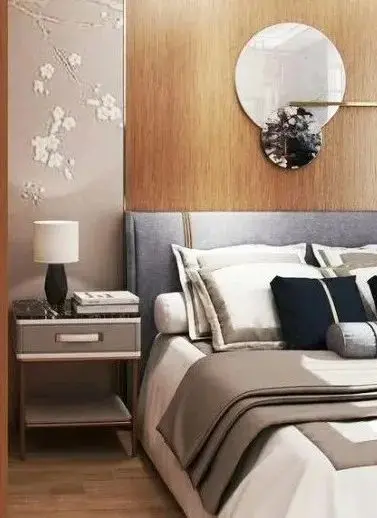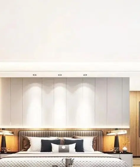 床头灯从便利程度来看:壁灯>吊灯>台灯。无主灯设计可以弱化“灯”在房间中的存在感,更平添了一抹温柔的气氛。