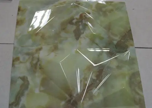 选取一块釉面砖,然后用手指轻轻敲击釉面砖的各个位置,如声音一致,则说明内部没有空鼓、夹层;如果声音有差异,则可认定此砖为不合格产品。