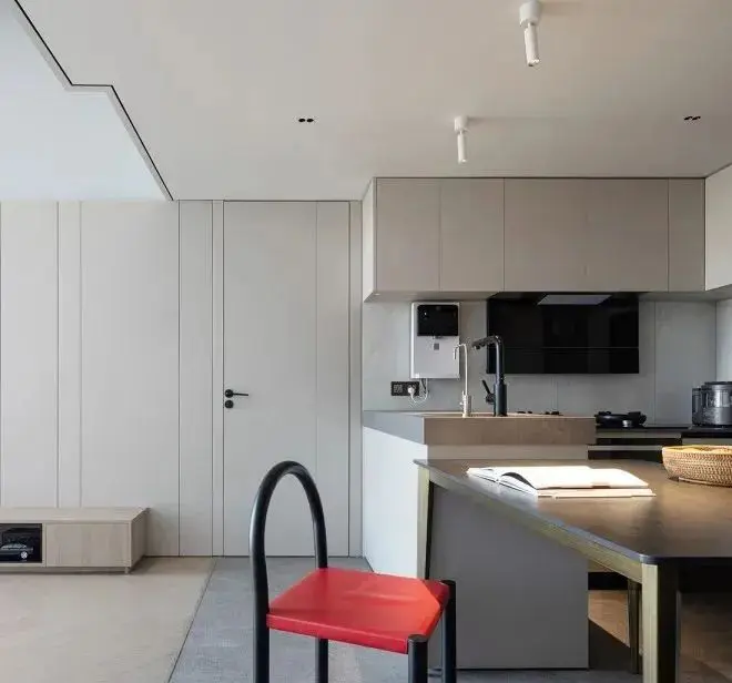 厨房的两边,设置了两个隐形门,分别通往卧室和家政间。
