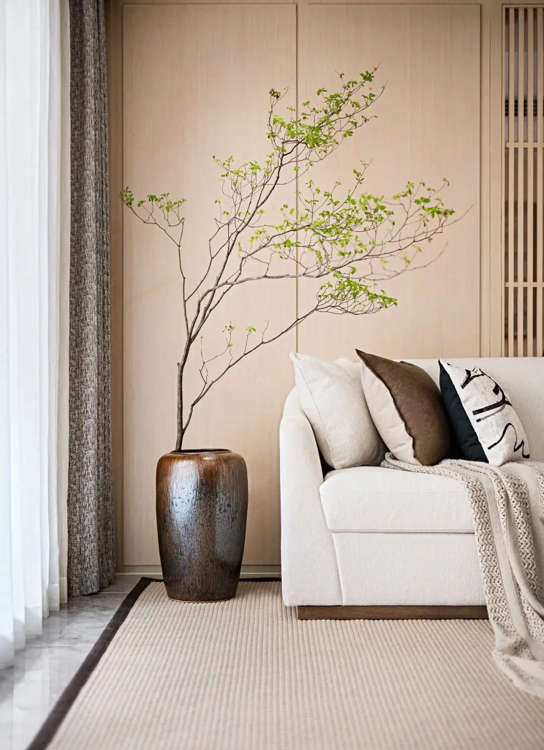 光本无形,大雅无声,本案设计师以独到的手法凝练元素,于一器一物,一花一木中体现日式禅意,让居住者感受悠然自得的品质生活,带动居住者对归家情意的无限向往。