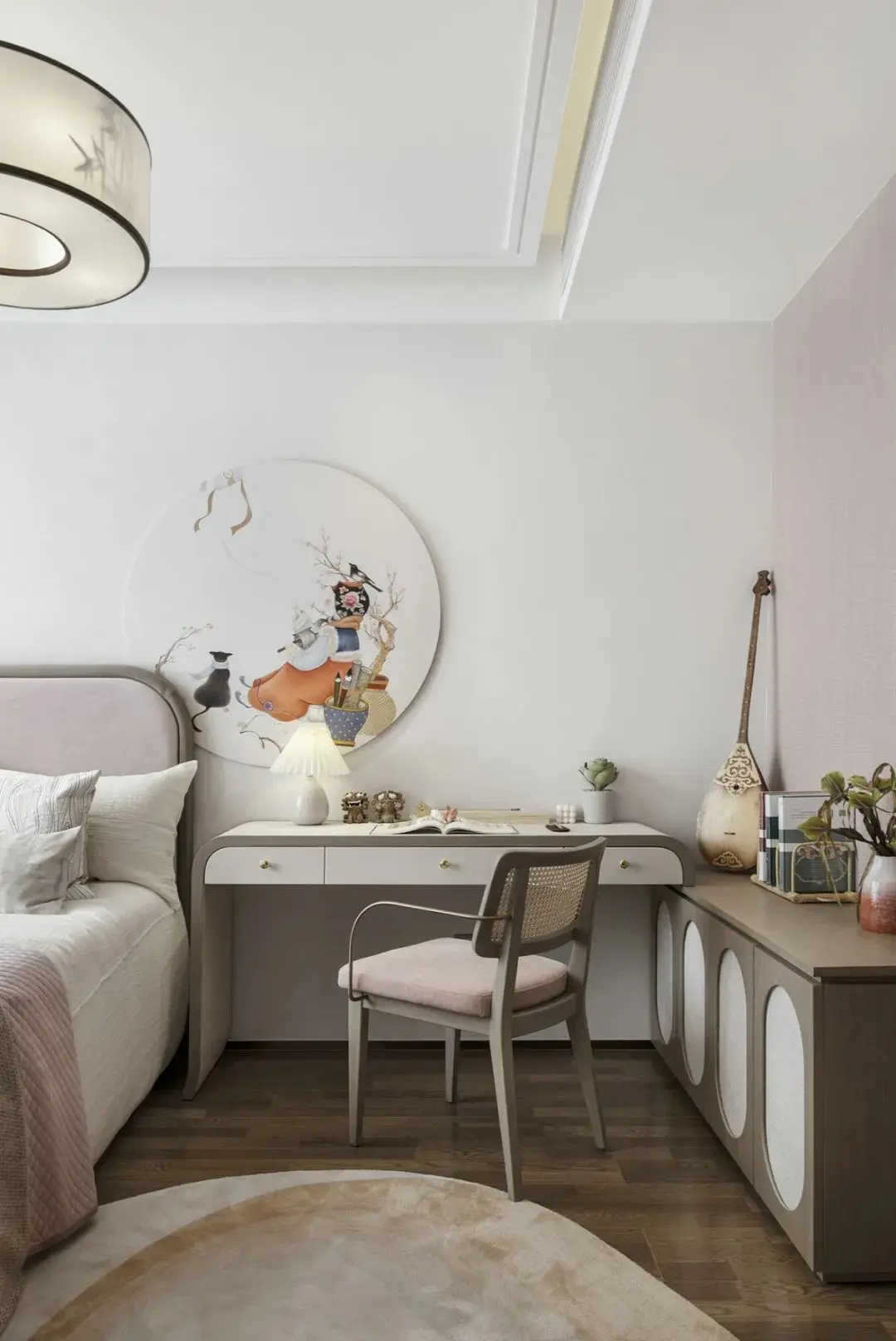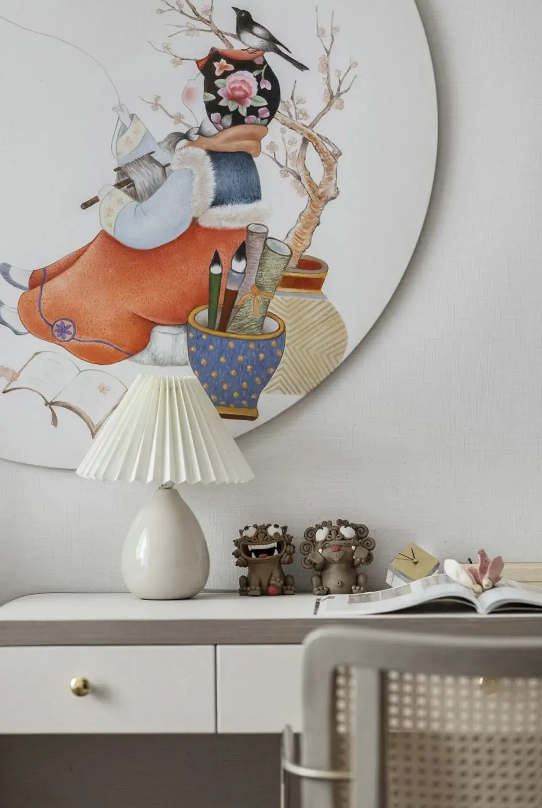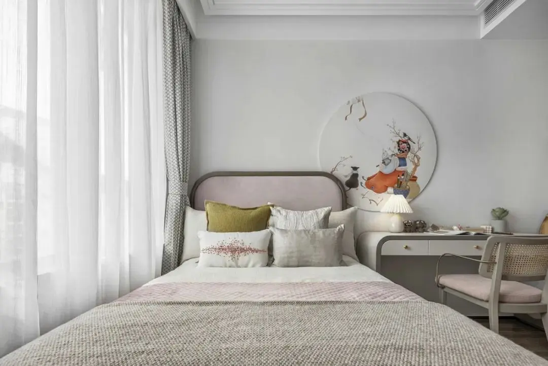 女儿房透露着东方女性的柔德,同时得到充满民俗意趣的小摆件的加持,彰显着家族的教养传承。