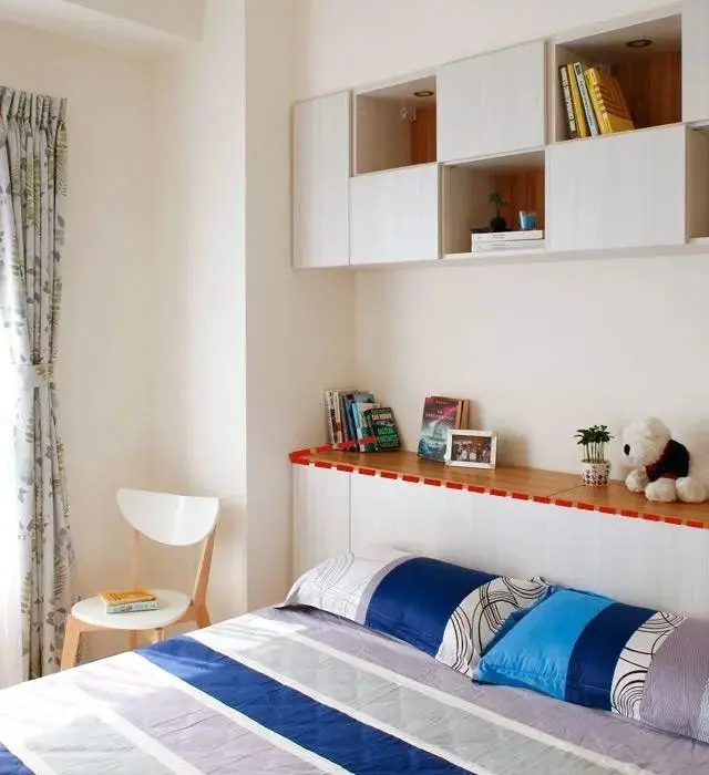 柜子的高度要合适,避免起床的时候磕碰到头,特别是安装侧边柜的时候中间有一个开放格,防止那个边角磕碰到头,所以不建议在老人和小孩的房间安装柜子。